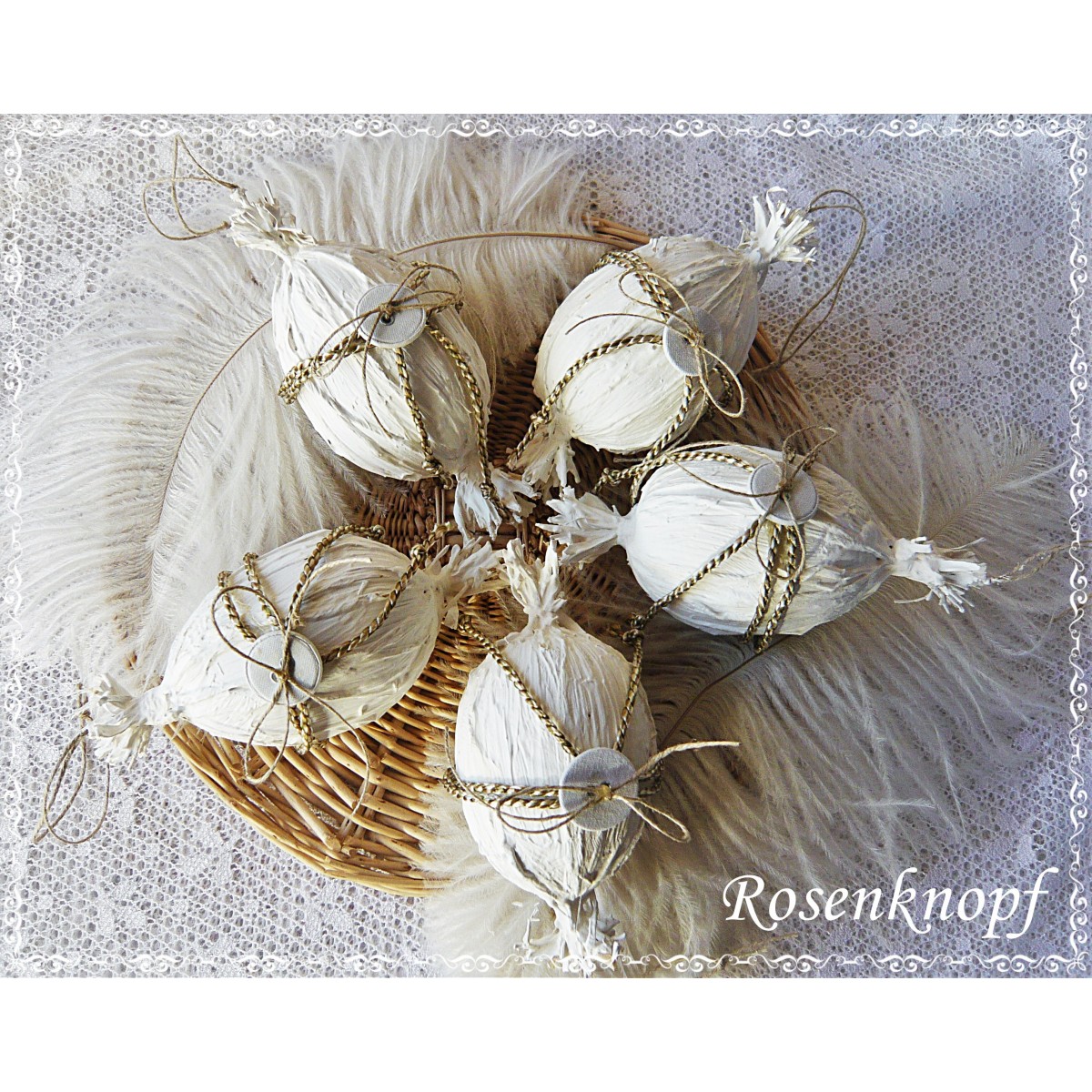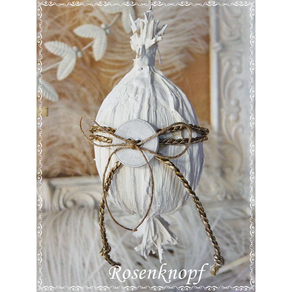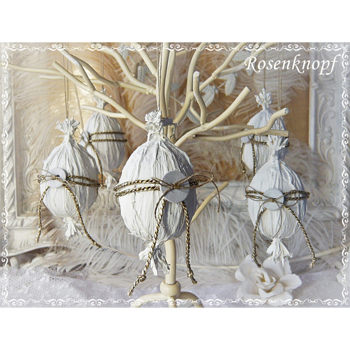 Zauberhafte, weiße Ostereier im Shabby Stil stehen hier zur Wahl.