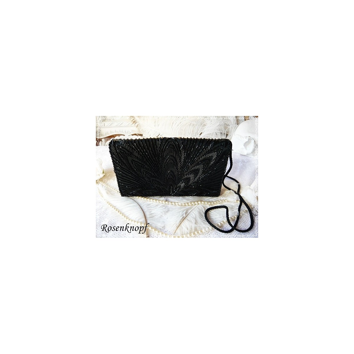 Wunderschöne, sehr elegante schwarze Clutch, wohl aus den 1940-1950ger Jahren für besondere Anlässe.