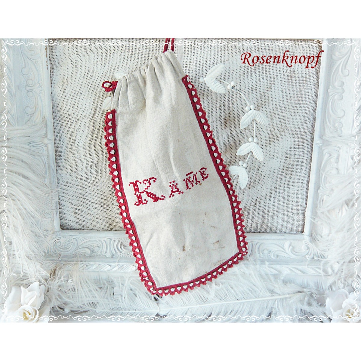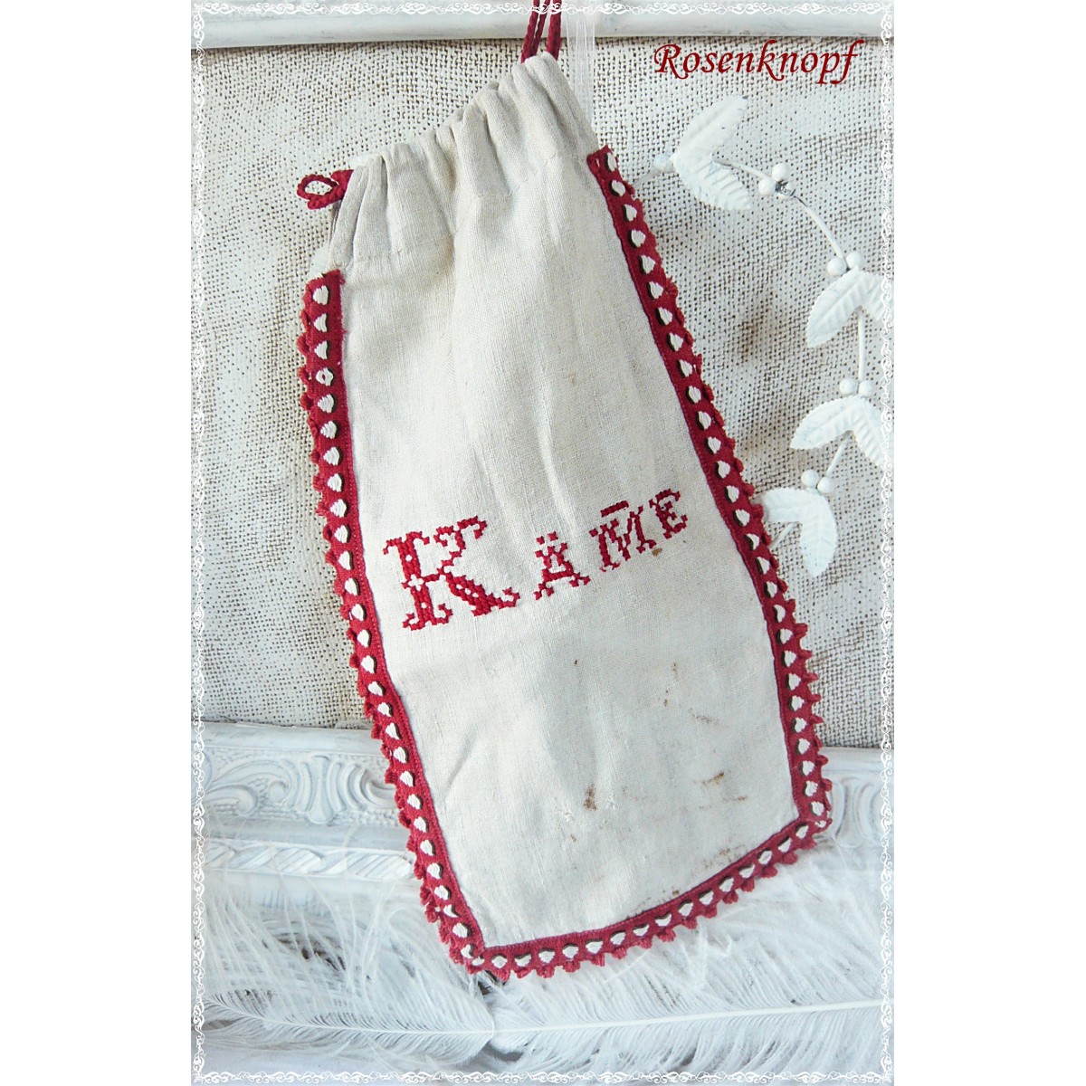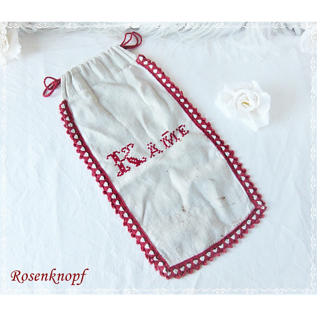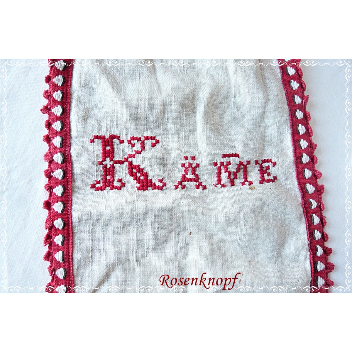 Im Kreuzstich wurde "Käme" aufgestickt und ist eine Kostbarkeit aus längst vergangener Zeit.