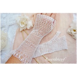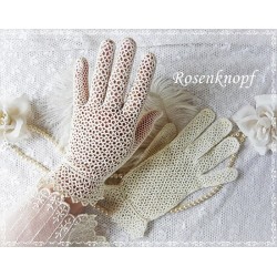 Zauberhafte Handschuhe in Ivory, wie sie früher die feinen Damen der gehobenen Gesellschaft übergezogen haben, um ihre Haut vornehm bleich zu halten. Diese sehr seltenen Damenhandschuhe sind aus allerfeinstem Filet Baumwollgarn gehäkelt und bestechen durch das außergewöhnliche Muster auf dem Handrücken. ♥Zauberhafte Brauthandschuhe auch für die...