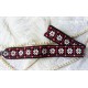1,45 Meter feste Vintage Stoff- Webborte in Weiß, Schwarz und Rot mit folkloristischem Blumenmuster.