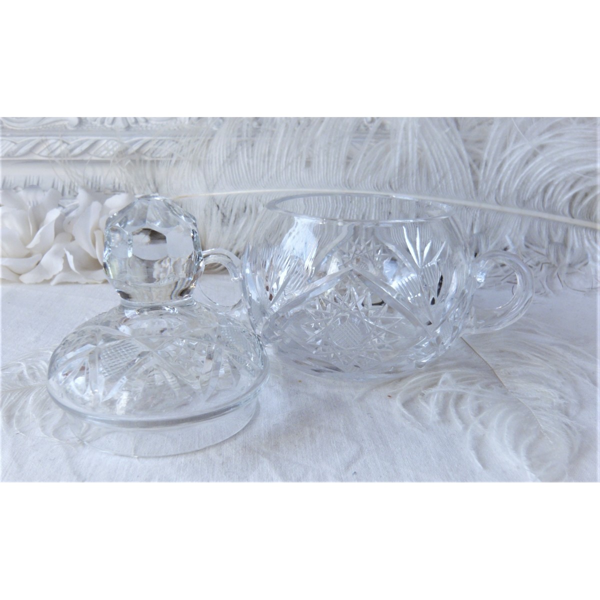 Wunderschöne und sehr dekorativer Kristall-Vintage Glas Schale mit Deckel die wohl aus der Zeit um 1950-1960 stammt.