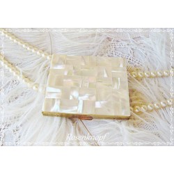 Wer das Besondere sucht, könnte sich in dieses außergewöhnliche, ovale Döschen durchaus verlieben. Wohl einmal als Pillenbox oder als Aufbewahrung zB. für Ringe gedacht, schmeichelt diese Vintage Dose durch die edle Materialverwendung. Der Verschluß dieses Döschens besteht aus Sterlingsilber. Zwei verschiedene Muschelarten wurden für das Käppchen und...