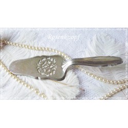 Wunderschöner, versilberter Tortenheber aus den 1930-1940ger Jahren für die elegante Kaffeetafel. Dieser Tortenheber mit Hildesheimer Rose Dekor am Griff und auch auf der Platte ist eine stilvolle Ergänzung die perfekt zum Shabby- und Vintage Stil passt. Er trägt die Punze "Antiko 100".