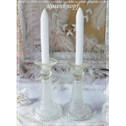 Wunderschönes und sehr dekoratives Paar Kerzenständer aus der Zeit um 1900-1930 mit hübscher Musterung. Diese beiden Kerzenhalter wurden wie damals üblich aus Pressglas gefertigt und sind daher sehr stabil. Sie sind ein dekoratives Accessoire das auf keiner festlich gedeckten Tafel fehlen sollte.