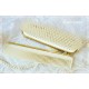 Die Oberseite der Haarbürste ist mit einem perlmutt schimmerndem Material belegt und mit Schutzfolie bedeckt.