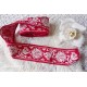 Ein Meter feste Stoff- Webborte in Weiß und Rot mit folkloristischem Muster.