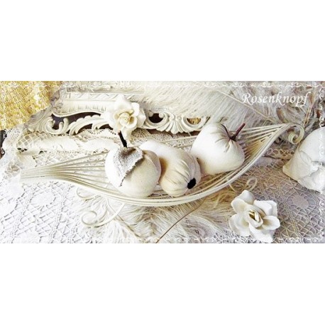Extravagante Obstschale in Ivory im angesagten Shabby Stil aus Eisen mit ungewöhnlichem Design in Form eines stilisierten Blattes.