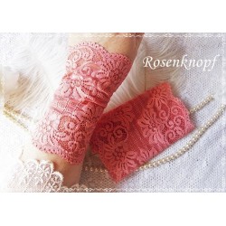 lll➤ Armstulpen/Pulswärmer aus Spitze in Lachs/Koralle zu einer Hochzeit, Standesamt oder ein Fest.Die elastischen Spitzenstulpen enden in weichen Bögen. Stulpen sind ein beliebtes Geschenk zum Geburtstag, Ostern oder Weihnachten für Ihre Ehefrau, Freundin, Mama, Oma, Tochter oder Schwester etc.