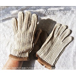 Schönes Paar sportlicher Vintage Handschuhe aus Leder und Baumwolle. Die Oberfläche dieser Handschuhe wurde aus stabilem Garn gehäkelt und macht sie so schön luftig. Innen haben sie Ziernähte und "Luftlöcher" zum atmen. Die Damenhandschuhe passen optimal zu sportlichen Gelegenheiten wie Golf, Minigolf, Radfahren etc. Sie sind kaum getragen und in...