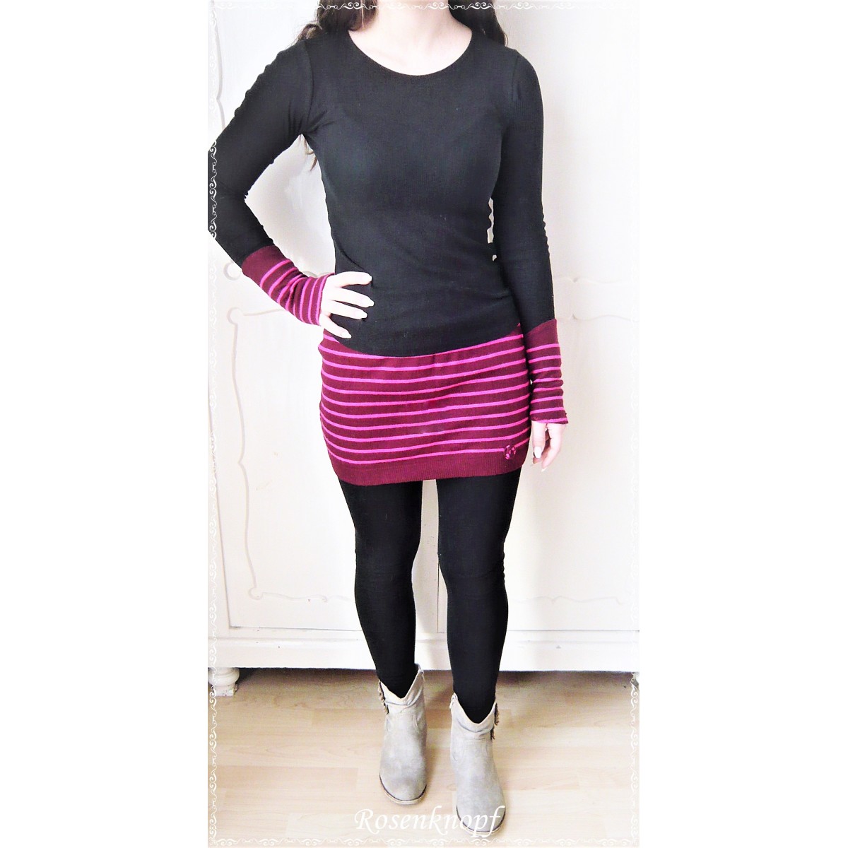 lll➤ Upcycling Strickrock in Weinrot und Pink der eng anliegt und toll über einer Leggins oder einer Jeans zu tragen ist.