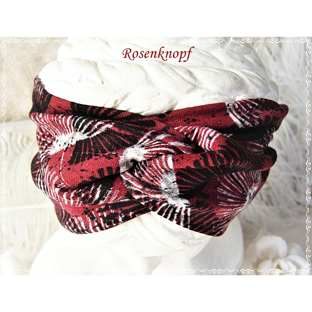 lll➤ Stirnband/Haarband aus Jersey in Weinrot, Schwarz und Ivory.