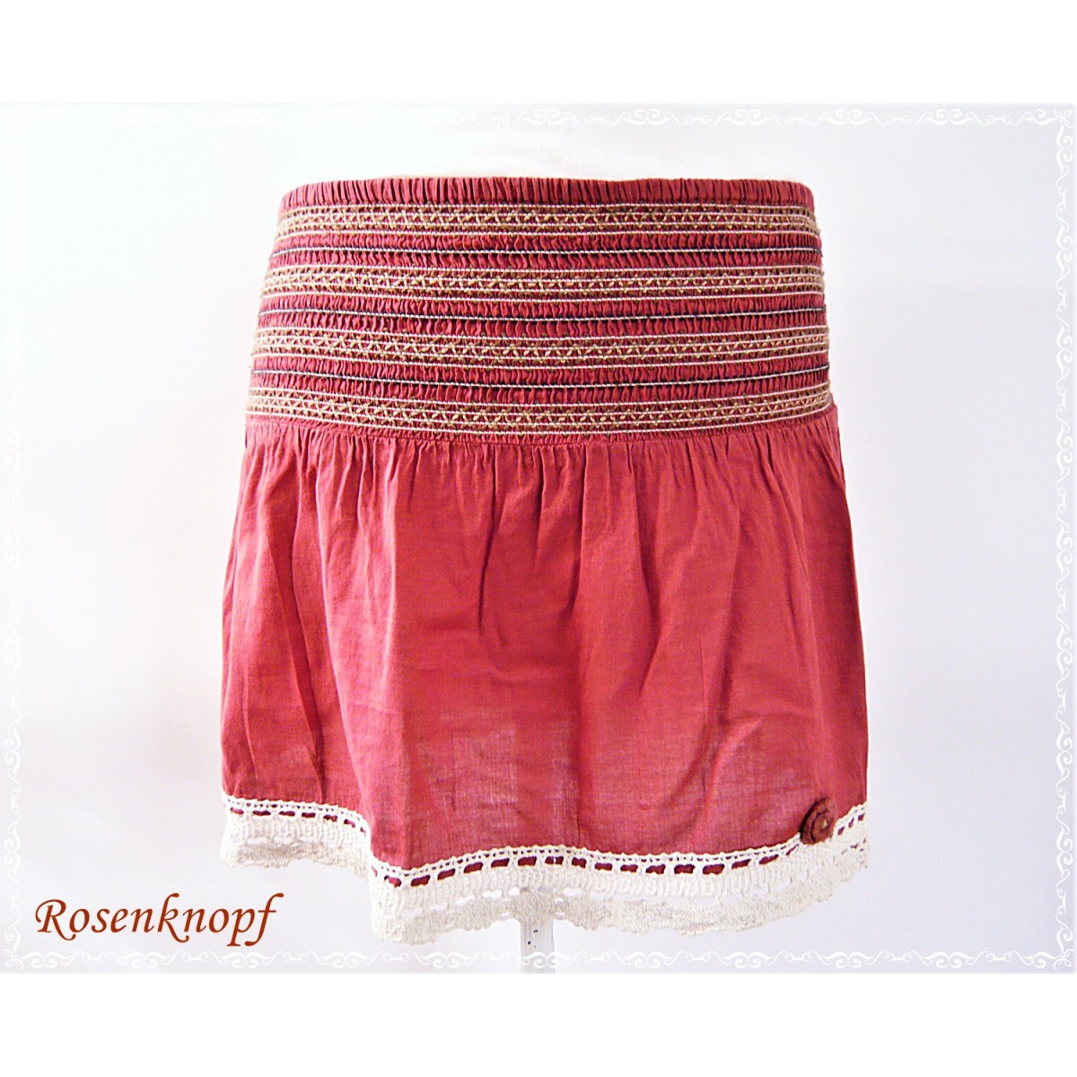 lll➤ Upcycling Rock in Rosenholz-Rot mit Gummi gesmokter und bestickter Taille, da kann nichts drücken und der Stoffrock passt sich bequem der Figur an.