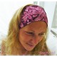 Zeitloses Stirnband aus elastischem Jersey in Rosa mit Punkten in Grau.