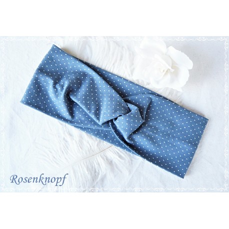Zeitloses Haarband/Stirnband aus elastischem Jersey in trendigem Jeansblau mit kleinen Pünktchen in Weiß.