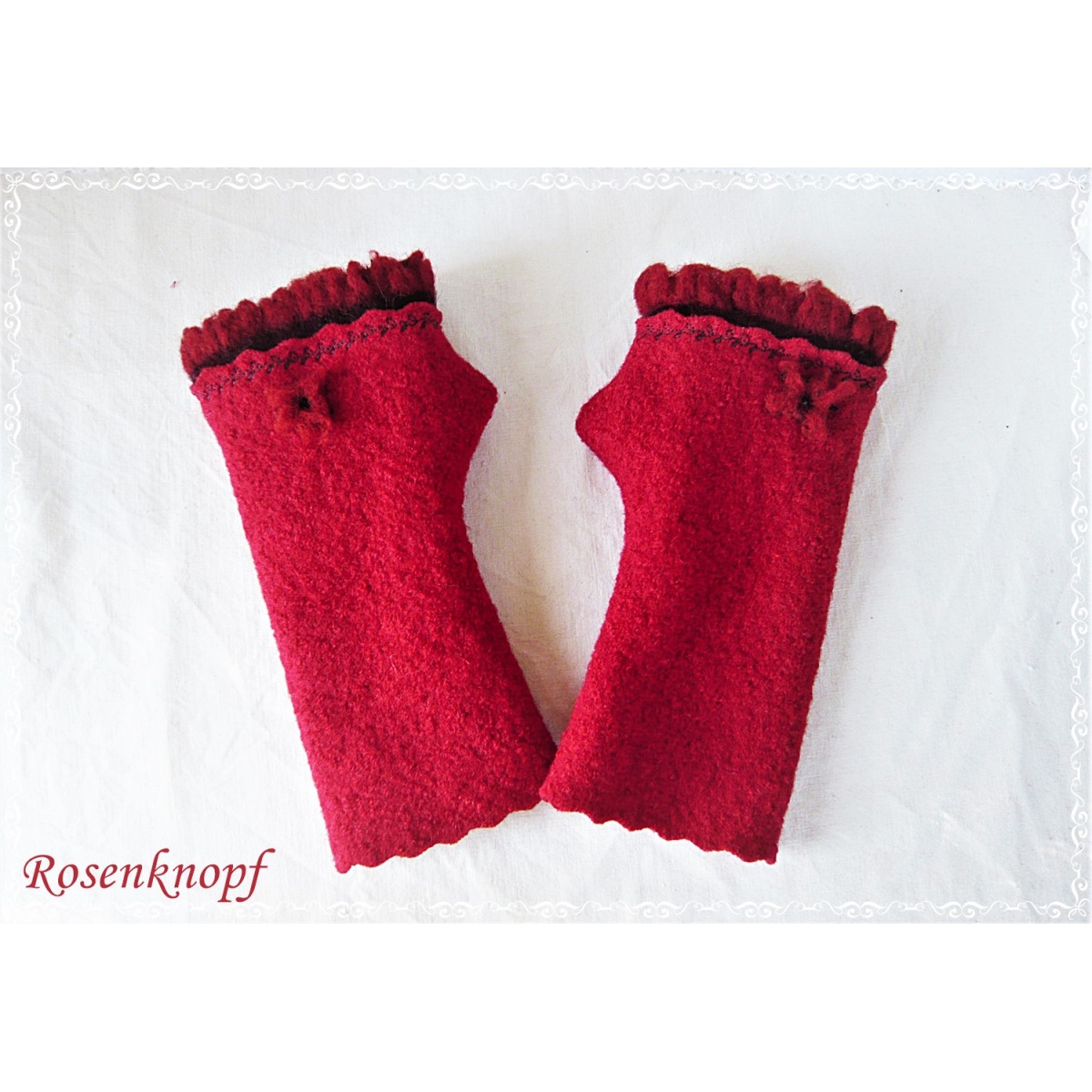 Wunderschöne und zeitlose Pulswärmer/Stulpen aus hochwertigem Walk in tiefem Rot mit Daumenloch.