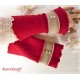 Armstulpen/Pulswärmer aus Walk in Rot mit wellig versäumter Kante.