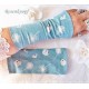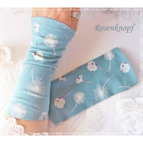 lll➤ Armstulpen/Pulswärmer aus Jersey in zartem Jadeblau mit Pusteblumen in Ivory.