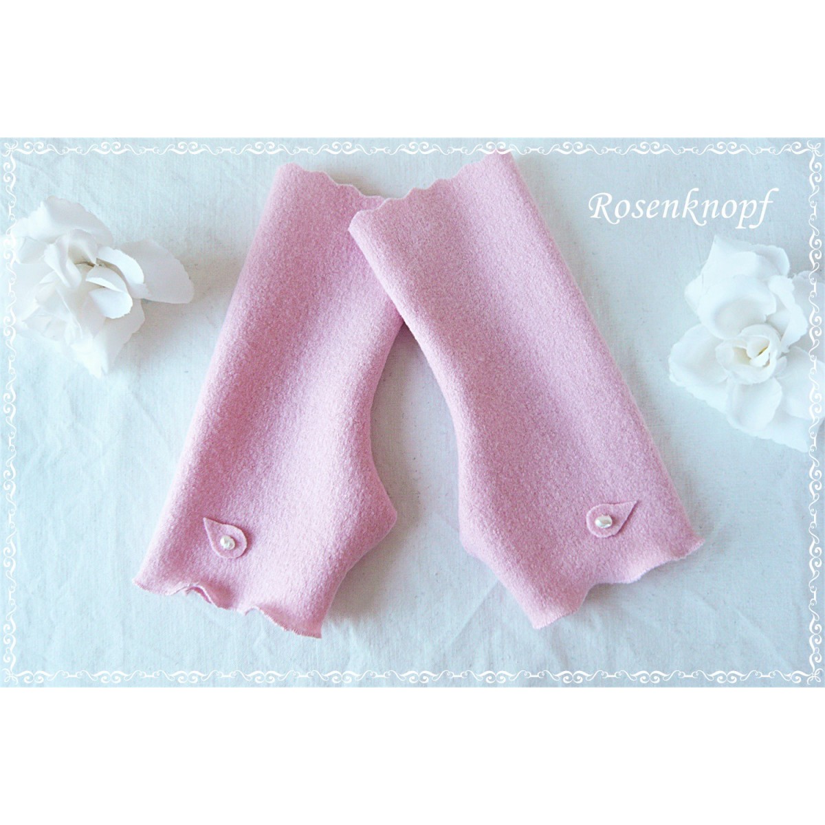 Wunderschöne und elegante Pulswärmer/Walkstulpen mit Daumenloch die aus hochwertigem und feinem Walk in zartem Rosa gefertigt wurden.