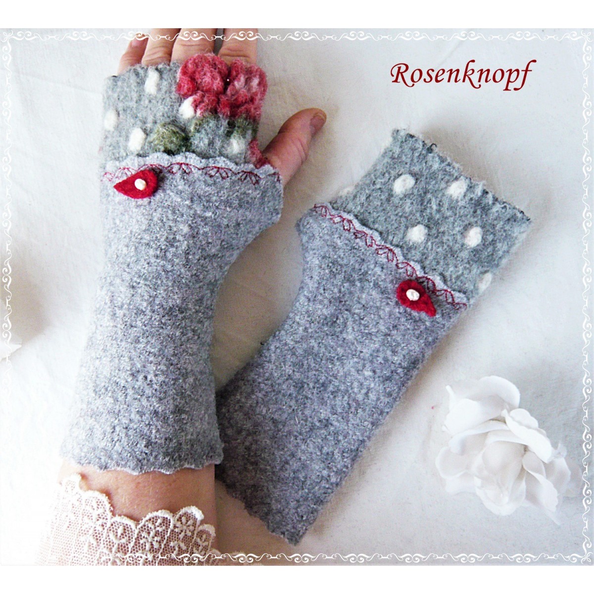 Wunderschöne und elegante Stulpen aus hochwertigem Walk in Grau mit Daumenloch.