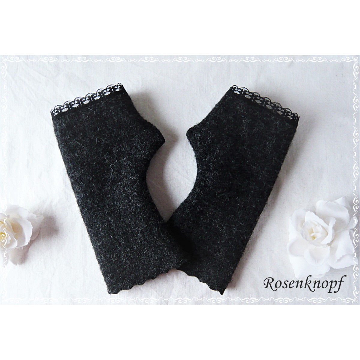 Wunderschöne und elegante Walkstulpen mit Daumenloch für kühle Tage die aus hochwertigem Walk in Anthrazit
