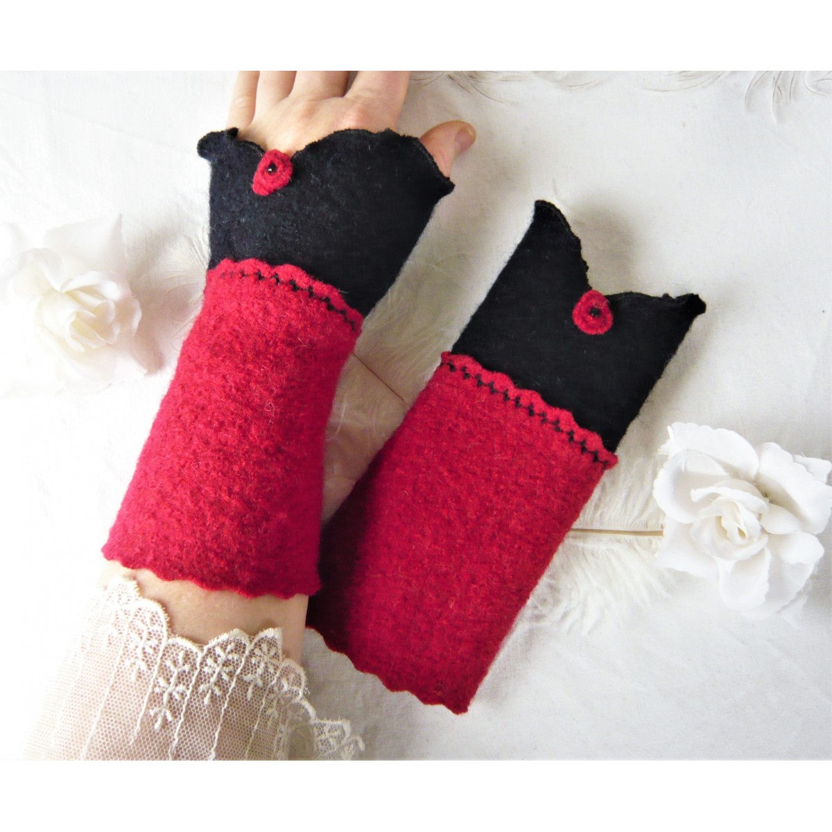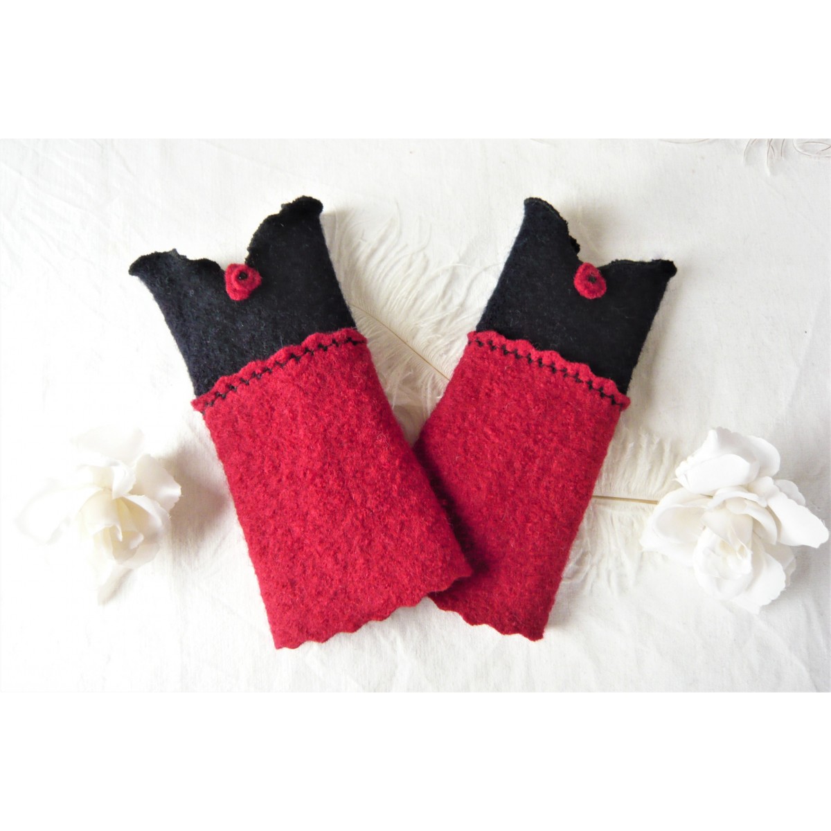 lll➤ Armstulpen/Pulswärmer aus Walk in Rot und Schwarz für eine Hochzeit, Standesamt oder ein Fest.