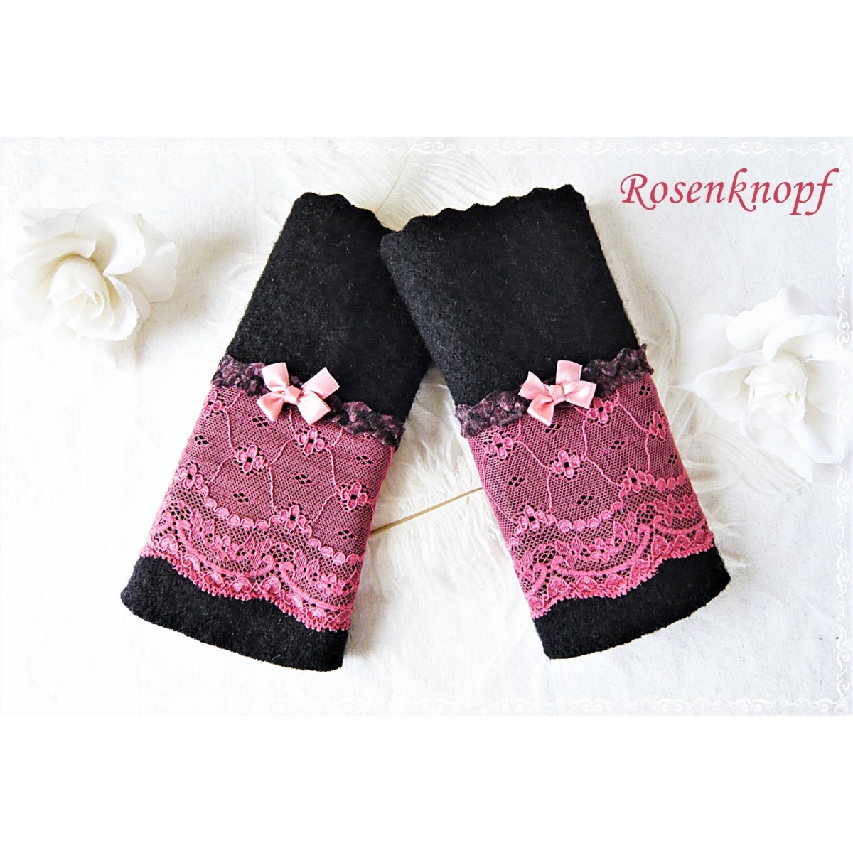 Wunderschöne und elegante Stulpen für die Romantikerin aus hochwertigem Walk in zeitlosem Schwarz.