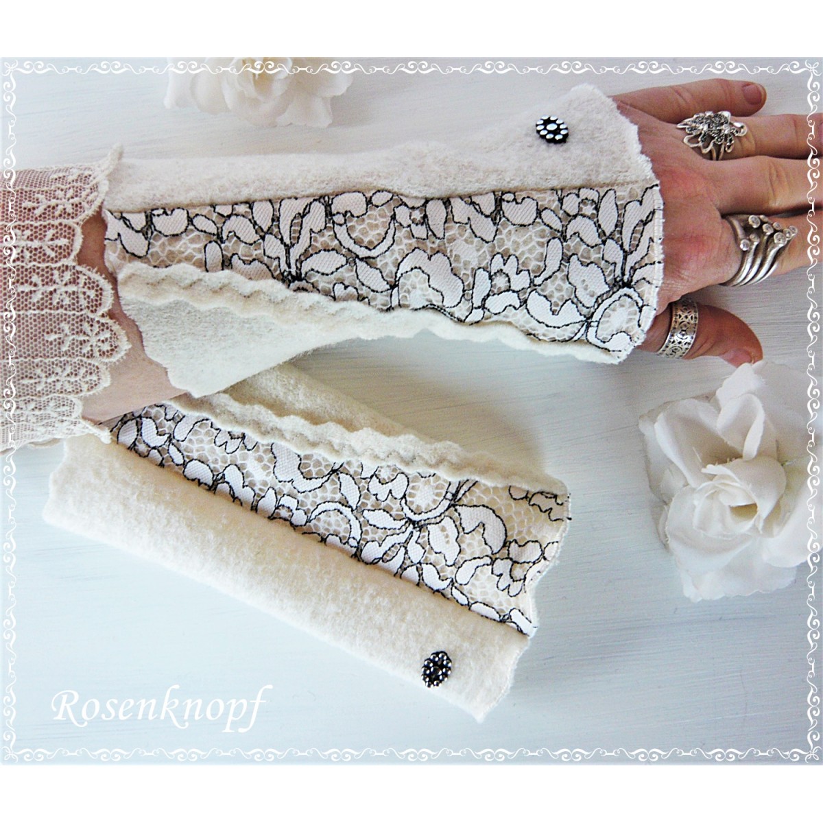Wunderschöne, elegante und feine Walkstulpen für die Romantikerin die aus hochwertigem Walk in cremigem Ivory genäht wurden.