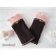 lll➤ Armstulpen, Pulswärmer aus Walk in Dunkelbraun und angesetztem Wollstoff in Apricot mit wellig versäumter Kante und farblich passender Perle.