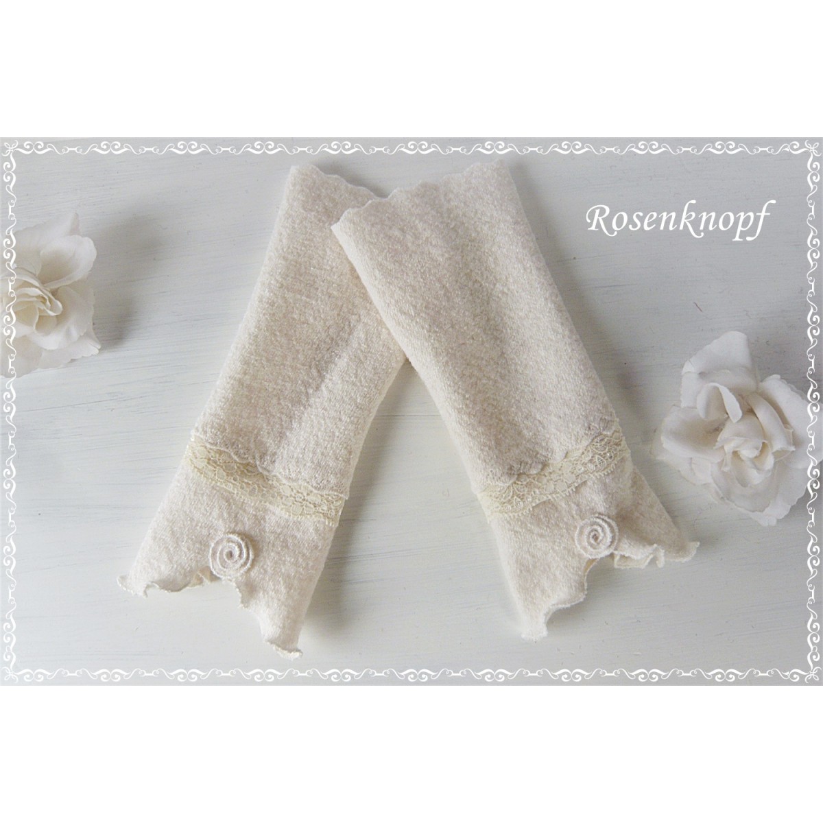 lll➤ Armstulpen, Pulswärmer aus Walk in Ivory zur Hochzeit, Standesamt oder Fest.