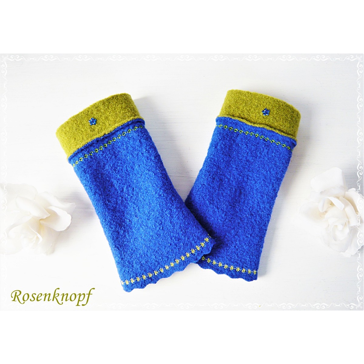 lll➤ Armstulpen, Pulswärmer aus Walkloden in Royalblau/Königsblau zur Hochzeit oder ein Fest.