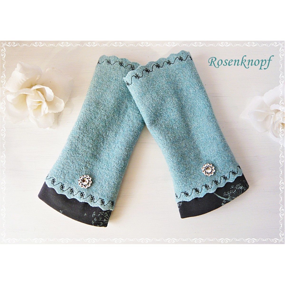 lll➤ Armstulpen/Pulswärmer aus Walk in Eisblau zur Hochzeit, Standesamt oder ein Fest.