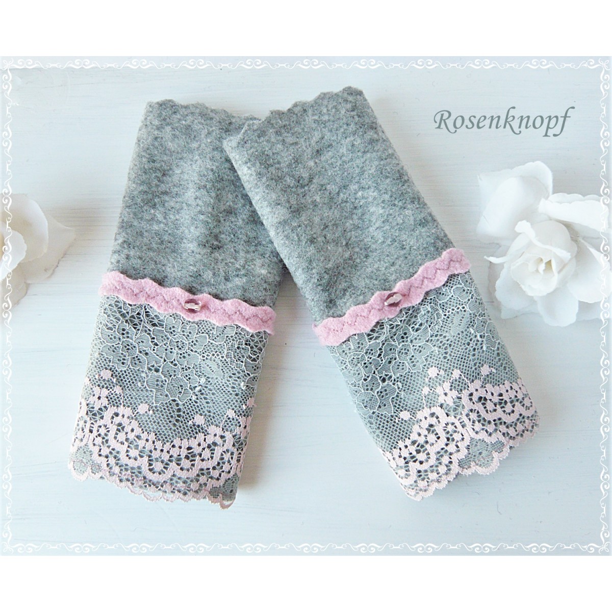 lll➤ Armstulpen/Pulswärmer aus Merinowolle in Grau zur Hochzeit, Standesamt oder ein Fest.