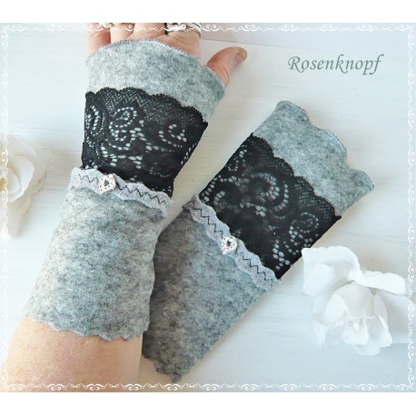 lll➤ Armstulpen/Pulswärmer aus Merinowolle in Grau zur Hochzeit, Standesamt oder ein Fest.