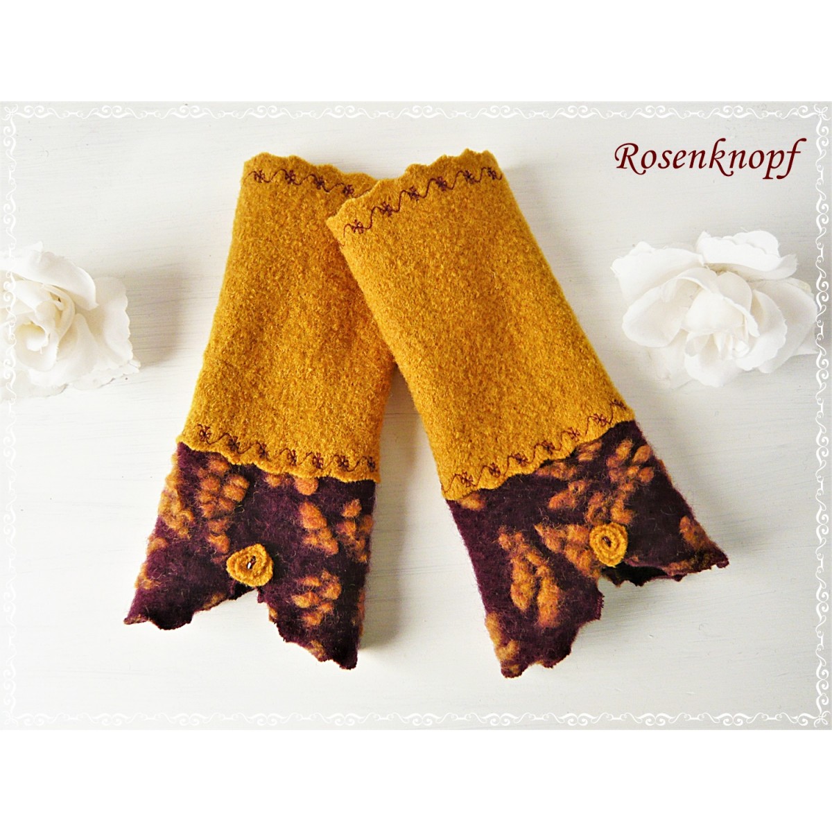 lll➤ Armstulpen, Pulswärmer aus Walk in warmem Ocker.