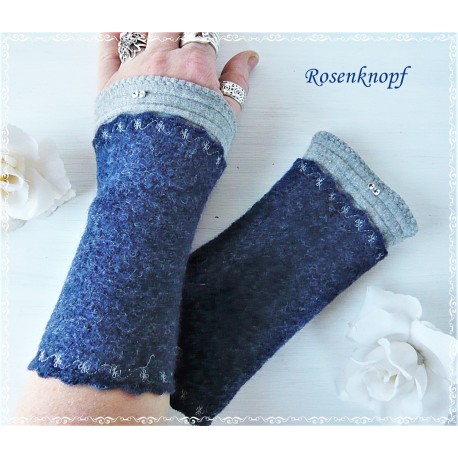 Schlichte Walkstulpen/Pulswärmer die aus hochwertigem Walk in Indigoblau genäht wurden.