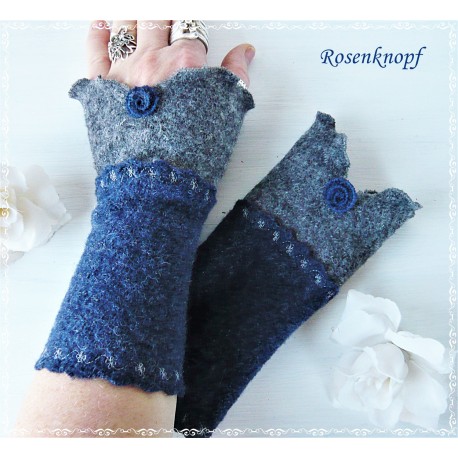lll➤ Armstulpen, Pulswärmer aus Wollwalk in Blau.