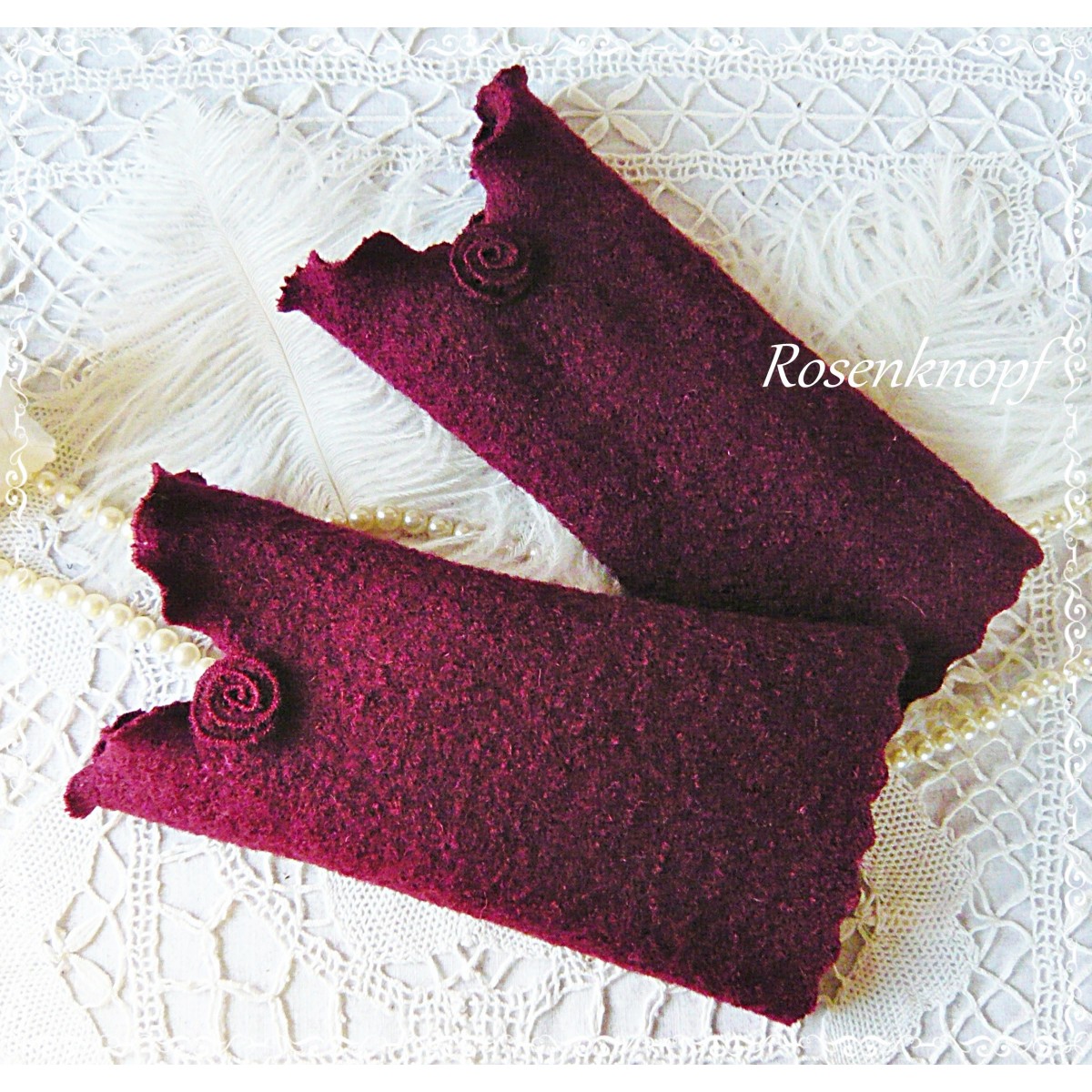 ♥Elegante Walkstulpen für kühle Tage aus hochwertigem Woll-Walk in Weinrot genäht.