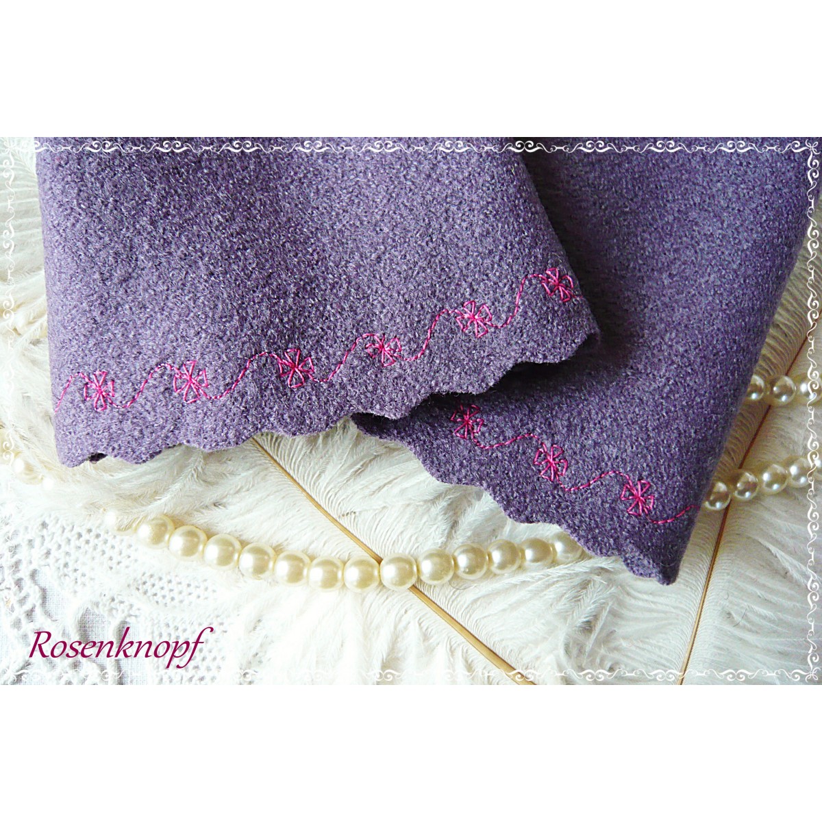 "Fliederell" wurden aus hochwertigem Walk in Lavendel/Flieder genäht.