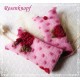 Kuschelwarme Walkstulpen für kühle Tage aus hochwertigem Woll-Walk in Rosa mit floralem Muster in Rot-Grün und weißen Punkten.