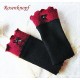 Romantische Akzente erhalten die Armstulpen durch den angesetzten Walk in Rostrot mit versäumter Kante und die Schleife mit Strass.