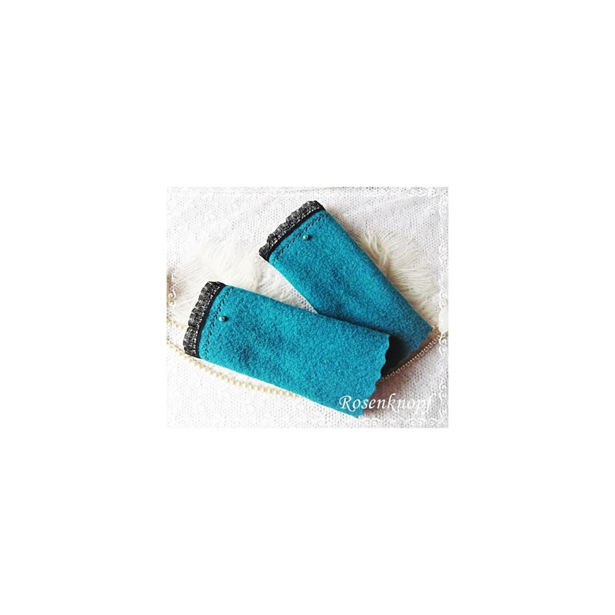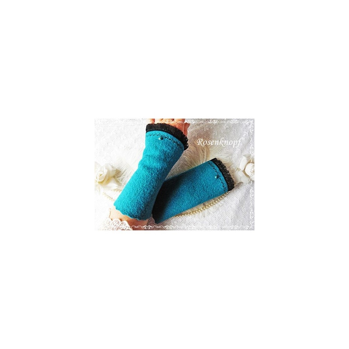 lll➤ Armstulpen, Pulswärmer aus Walk in in Türkis/Azur zur Hochzeit, Standesamt oder Fest.