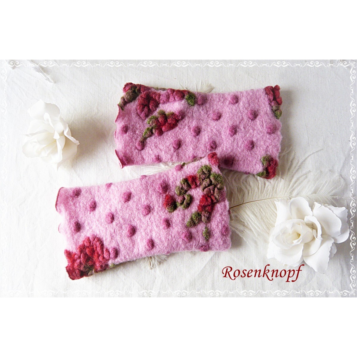 lll➤ Armstulpen/Pulswärmer aus Reliefwalk in Rosa, Rot-Grün mit Dots für eine Hochzeit, ´Standesamt, Fest.