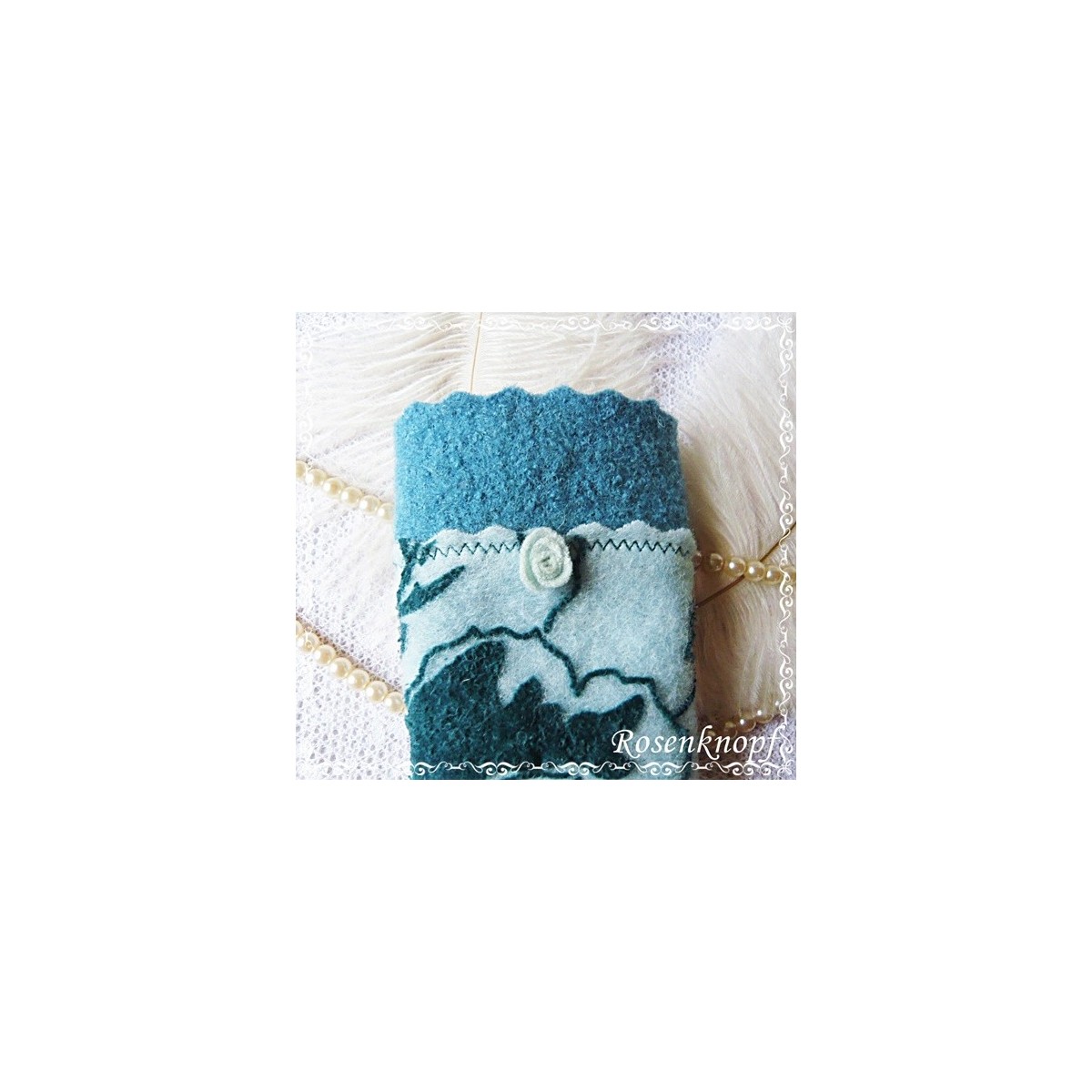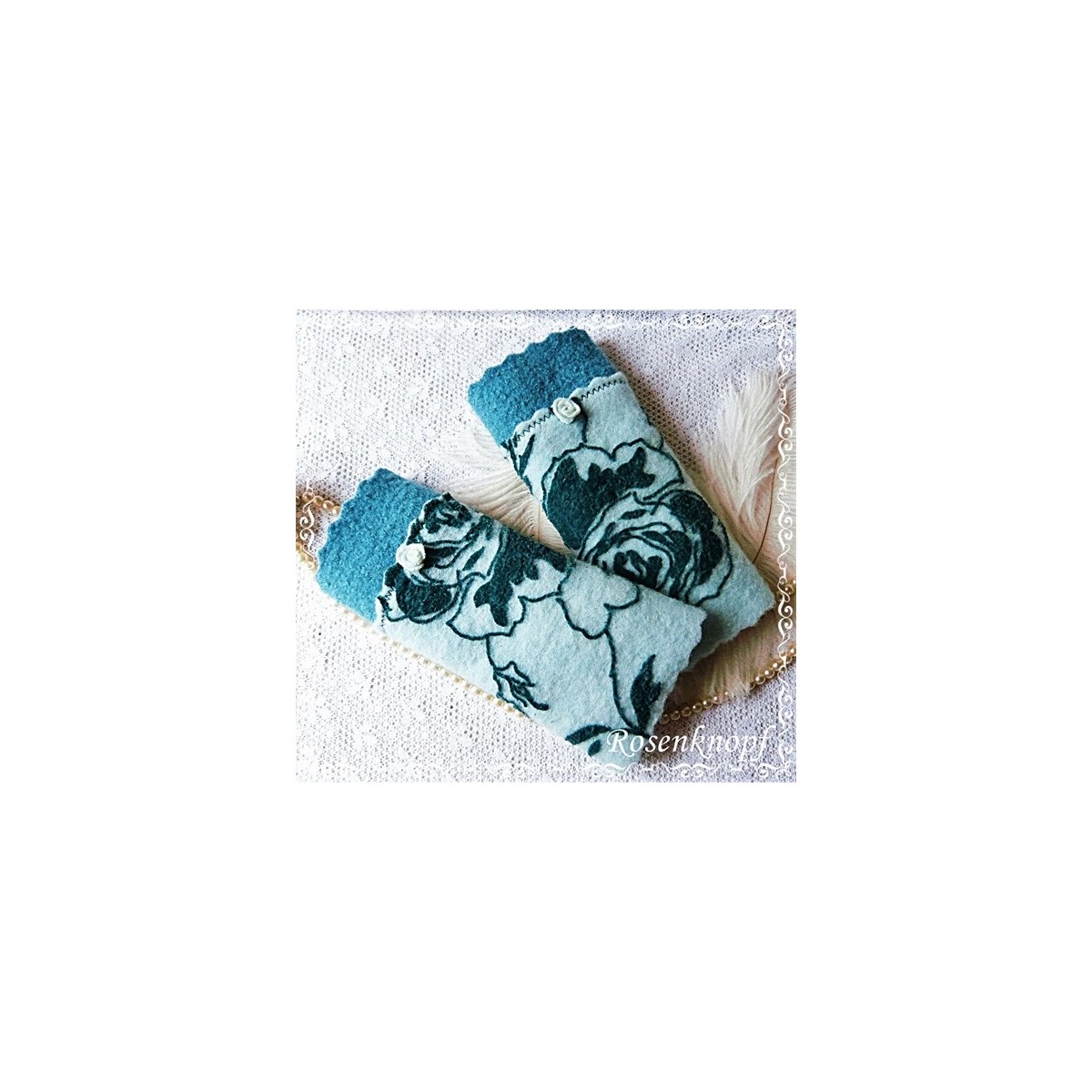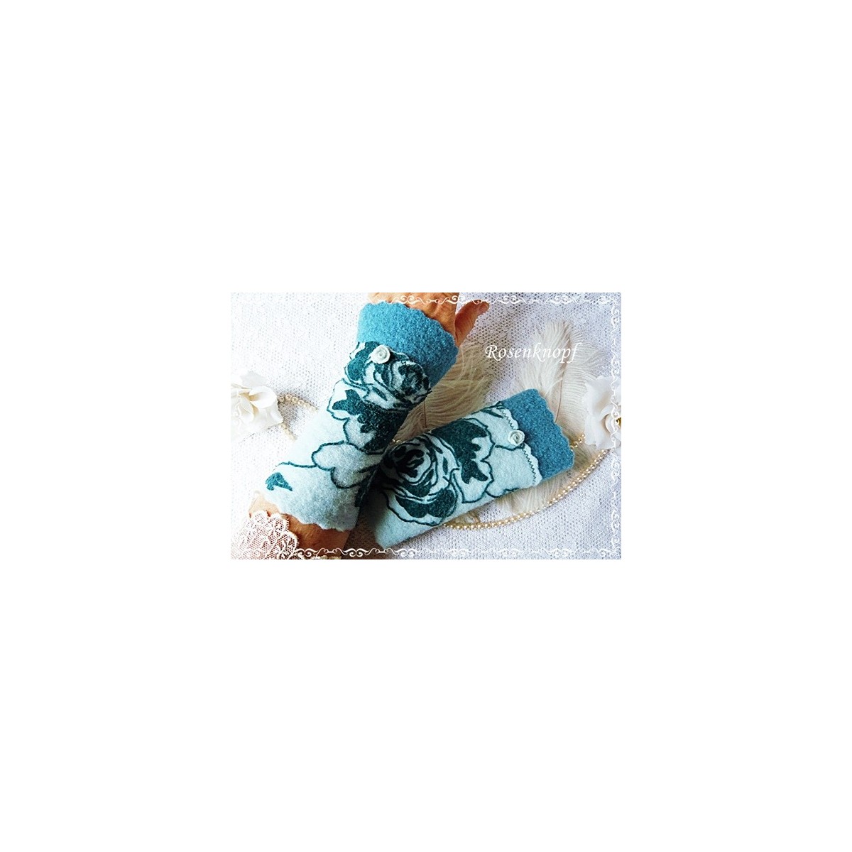 Romantische Akzente erhalten die Wollstulpen durch den angesetzten Walkstreifen in Petrol und die Walkrose.