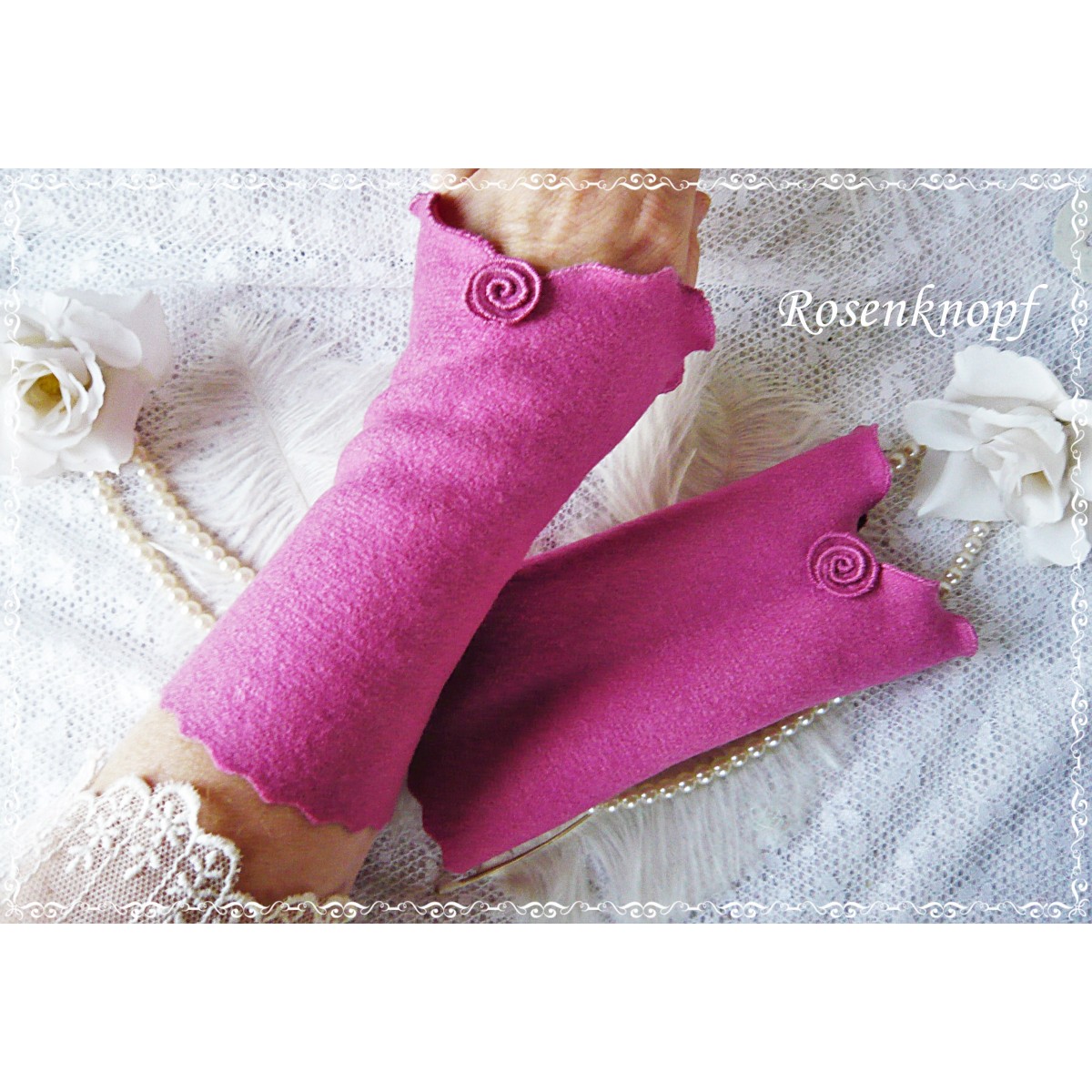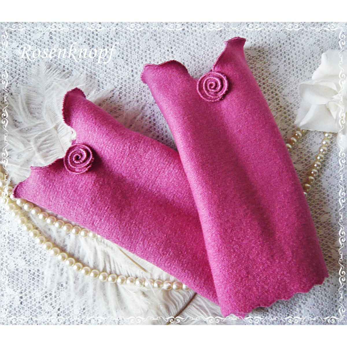 Elegante Walkstulpen für kühle Tage aus hochwertigem Woll-Walk in Fuchsia/Pink genäht.