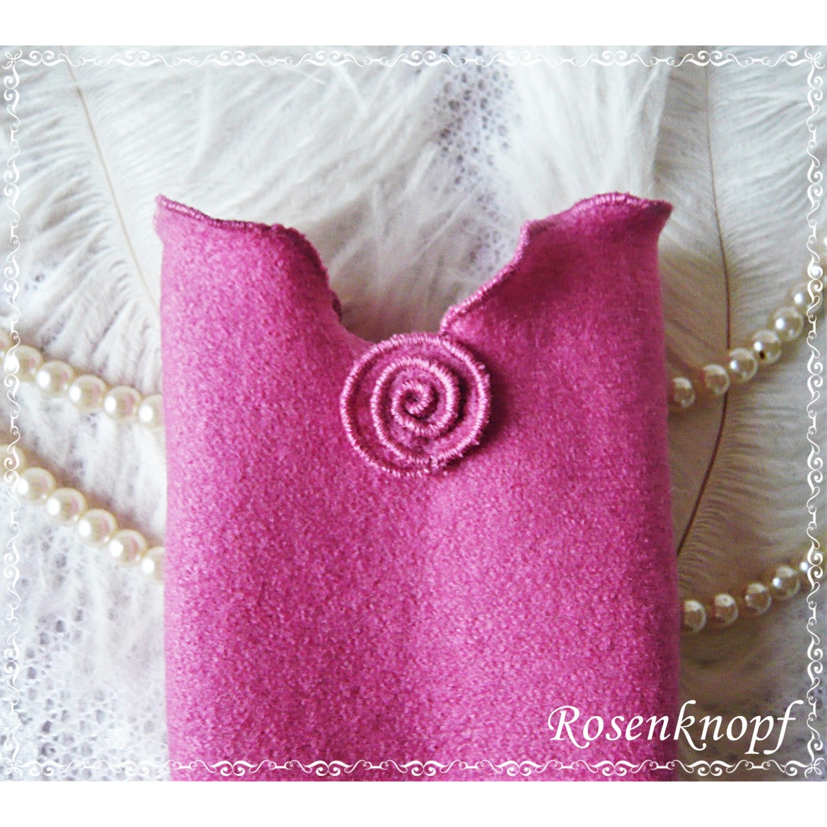 Romantische Akzente erhalten die Armstulpen durch das Walkröschen in der Schnittmitte.