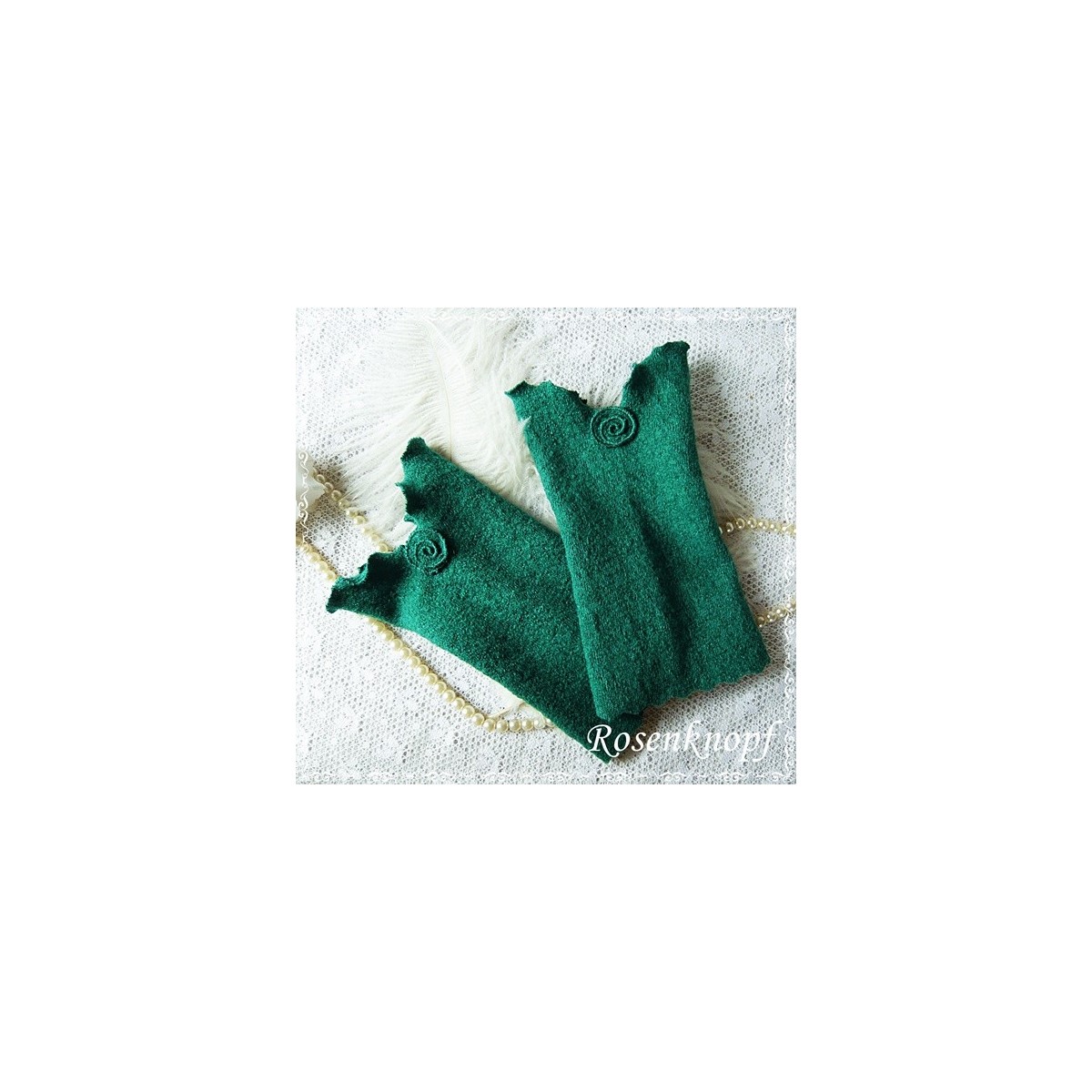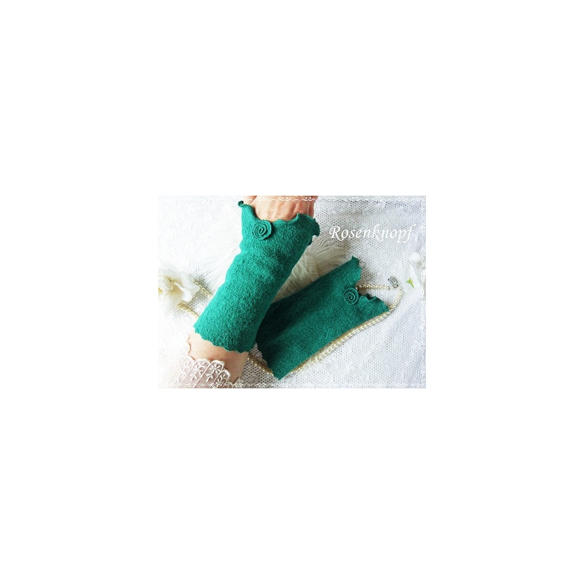 Elegante Walkstulpen für kühle Tage aus hochwertigem feinem Woll-Walk in Smaragdgrün genäht.