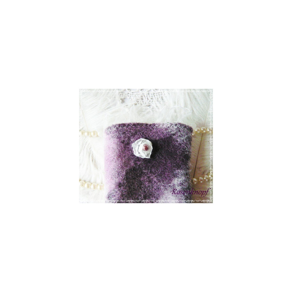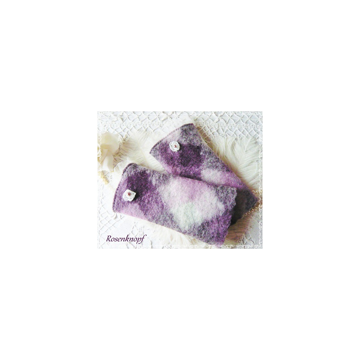 Romantische Akzente erhalten die Armstulpen durch zarte Organzaspitze und das weiße Tüllröschen mit einer Perle in Flieder.