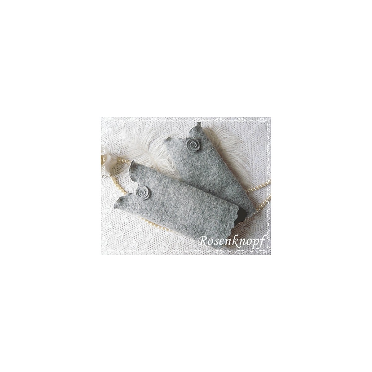 Romantische Akzente erhalten die Armstulpen durch das Walkröschen in der Schnittmitte der abgerundeten Kanten.