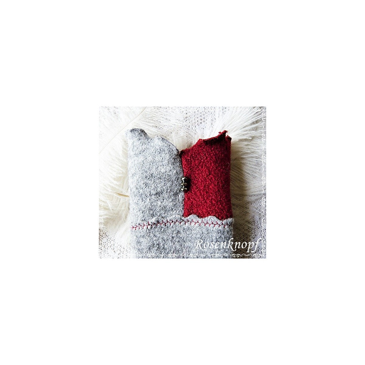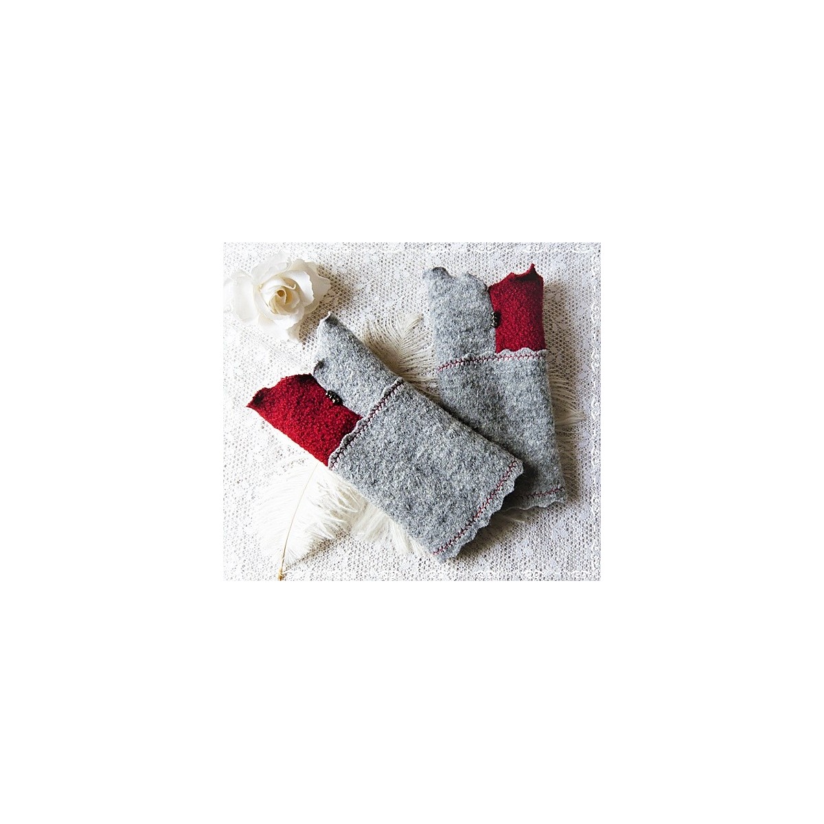 "CLODITE" wurden aus hochwertigem Walk in Grau genäht, der vordere Teil setzt sich aus Walk in Grau und Rot zusammen.